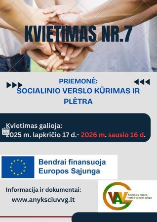 Kvietimas Nr.7 pagal VPS priemonę ,,Socialinio verslo kūrimas ir plėtra’’ (kodas AVVG-LEADER-20VVG-06-04)